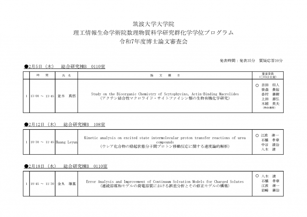 2026/1/30 / 最終更新日時 : 2026/1/30 ebihara.yuichi.ga お知らせ 【博士論文公開発表会-日時変更のお知らせ】 令和7年度3月修了予定の公開発表会につきまして、日時および会場が変更となりましたので、プログラムを更新いたしました。以下のファイルをご確認くださいますようお願いいたします。 R7博士論文プログラム-修正版ダウンロード